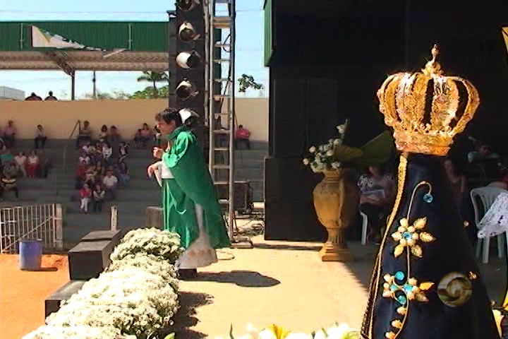 O Padre Juarez de Castro da Rede Vida presidiu uma missa, juntamente com o Padre Marino, no Parque de Exposições de São Gotardo, em mais um dia de evento da Festa de Nossa Senhora Aparecida.