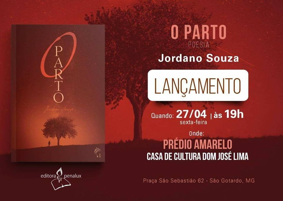O jovem Jordano Souza lança no dia 27 de abril o seu primeiro livro de poemas " O Parto". O lançamento acontece na Casa de Cultura Dom José Lima a partir das 19 horas e é um marco para a cultura da cidade. O livro foi selecionado pela editora Penalux que vai bancar a edição e distribuição do livro. O lançamento promete um momento cultural diferente, com uma mesa redonda sobre o trabalho e a boa atmosfera que só a poesia é capaz de proporcionar.